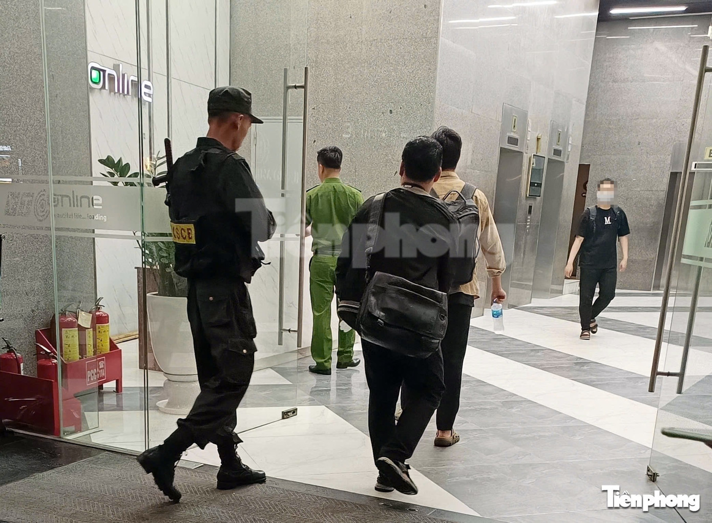 Khoảng hơn 1 giờ sau, một nhóm cán bộ công an đi ô tô biển xanh và biển trắng đến và tiếp tục đi vào thang máy tòa nhà. Trong thời gian hơn 4 tiếng, có một số người được cho là nhân viên công ty cũng xuất hiện.