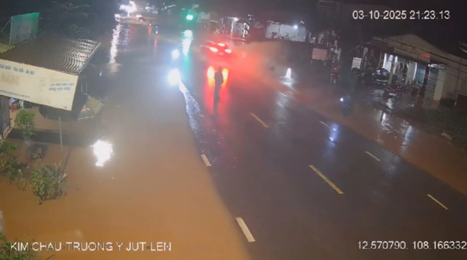 Theo báo cáo, vào tối 3/10, trên địa bàn xã Dray Bhăng có xảy trận mưa rất lớn làm ngập lụt cục bộ tại Km16+650 QL27 thuộc địa phận Thôn 4, xã Dray Bhăng phía trước Trường THPT Y Jut làm ùn tắc giao thông.