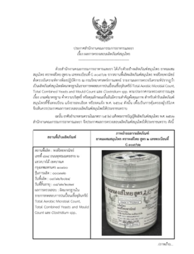 Lô sản phẩm vi phạm mang số 000332, sản xuất ngày 9/12/2024 và có hạn sử dụng đến 8/12/2027. FDA xác định đây là “thảo dược không đạt tiêu chuẩn” theo Điều 60(2) của Luật Sản phẩm Thảo dược năm 2019 (B.E. 2562) và yêu cầu người dân ngừng sử dụng ngay lập tức nếu đang sở hữu sản phẩm thuộc lô nói trên.
